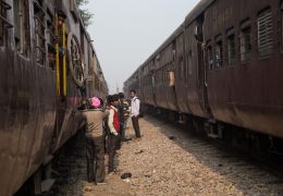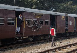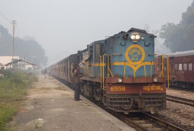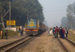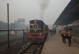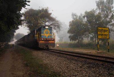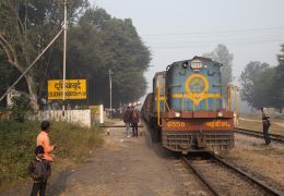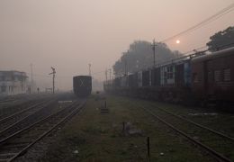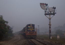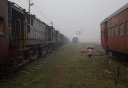 The next morning it was up early before sunrise for another E-Rickshaw ride to the station. The atmosphere was absolutely stunning with the early morning sun trying to pierce through the thick fog and once Thomas had gotten his tickets we scrambled around trying to capture as much of the atmosphere as possible. Until 2016 Pilibhit was a major metre gauge junction with 5 lines radiating out of the station, today however just two metre gauge lines remain and two former MG lines have reopened after gauge conversion, the station is still a mess of dirt piles and construction. The station was a hive of activity with passengers scrambling to find space on the 3 successive morning departures, first was the 55371 Pilibhit to Tanakpur passenger only the newly converted line behind another IZN WDM3D. (below)