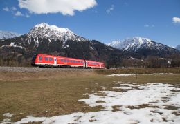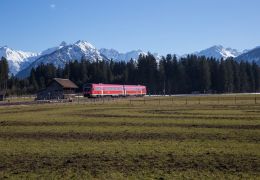 Thankfully though as we headed west the cloud cover rapidly decreased and by the time we reached Immenstadt it was nearly gone. I decided to ride all the way to Oberstdorf to scout the line which turned out to be a smart move. The Oberstorf branchline is a real gem, passing through small villages with classic architecture and the big snowcapped peaks of the Alps towering above. Getting around is quite easy just by walking and public transit though a bike would no doubt have made things even easier. The real challenge is getting the snowcapped mountains in the frame as most of them are to the south but I am quite happy with the results.