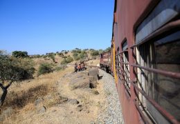 Just a few minutes after departing Goram we screech to a halt, once again for animals, this time a cow has wandered onto the tracks. Due to the slow speed metre gauge trains often are able to stop before hitting animals on the tracks. I used this quick stop to my advantage and jumped out for a bonus photo.